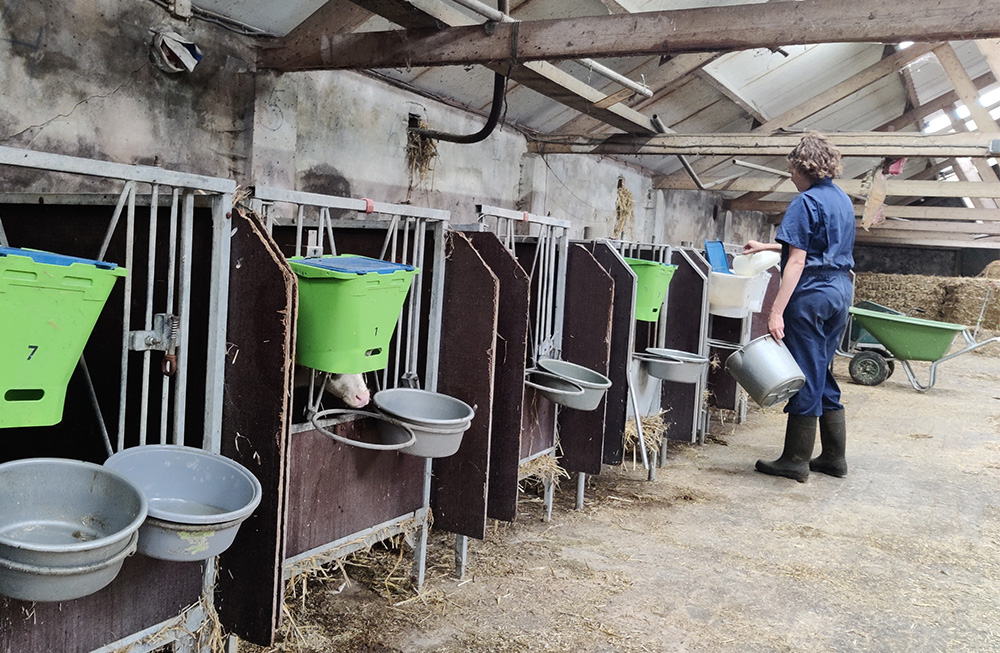 Anouk kijkt bij elk verdacht kalf naar de mest en het gedrag. ‘’Bij infectieuze diarree zet ik Diarree-Quick-Fix in. Het is vrij duur spul, maar in verhouding gebruik je weinig. Daarnaast verhoogt het je werkplezier. Ik voer liever vitale kalveren dan eentje die dagen op apegapen ligt. Het werkt gewoon snel als een kalf diarree heeft.’’